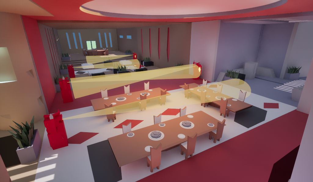 I used Unreal Engine 5 to build and create the level, and used Unreal Engine Blueprints to script the level. The guards are moved using Unreal Engine Sequencer for simple animations. I created all assets in the level using Unreal Engine Brushes.