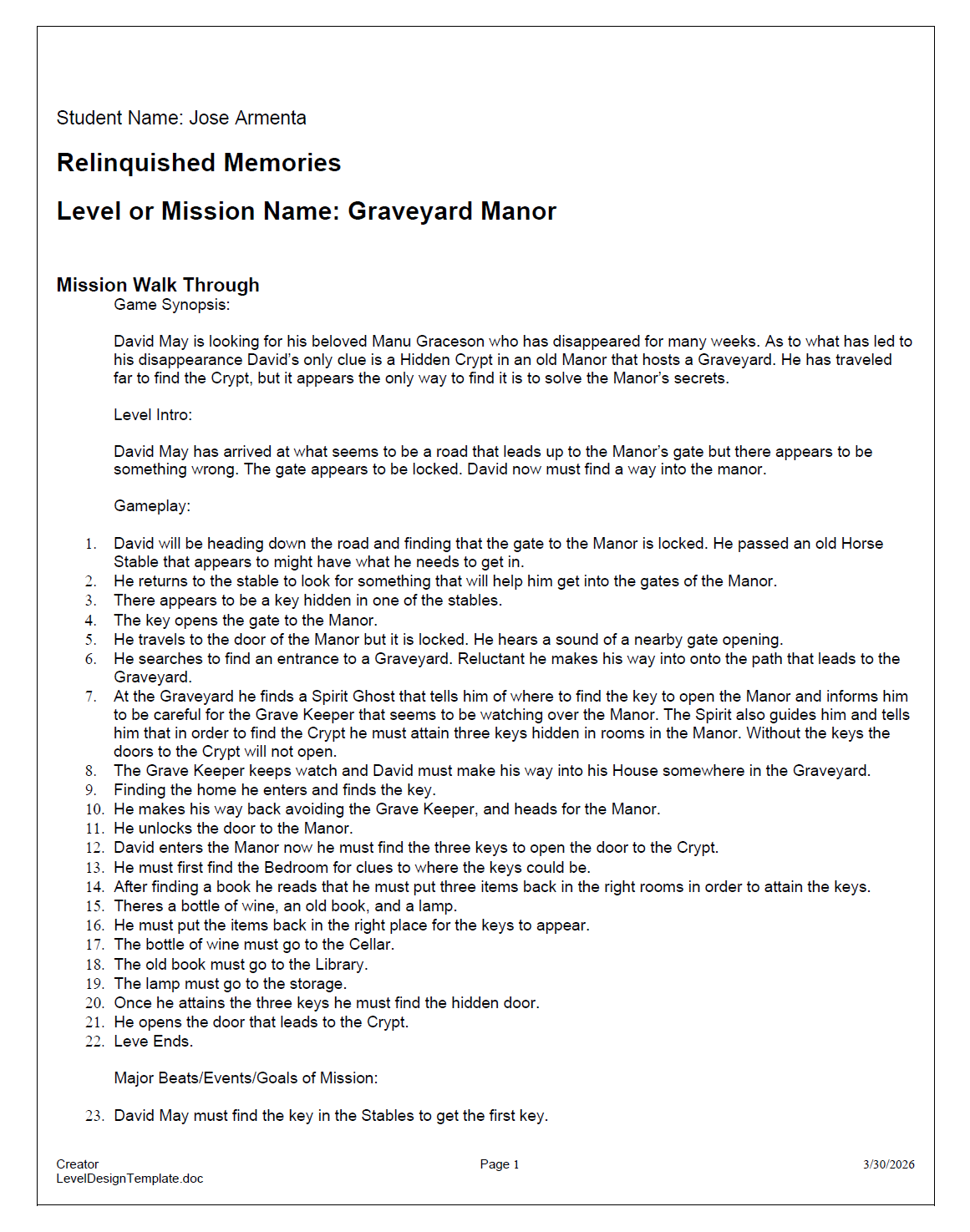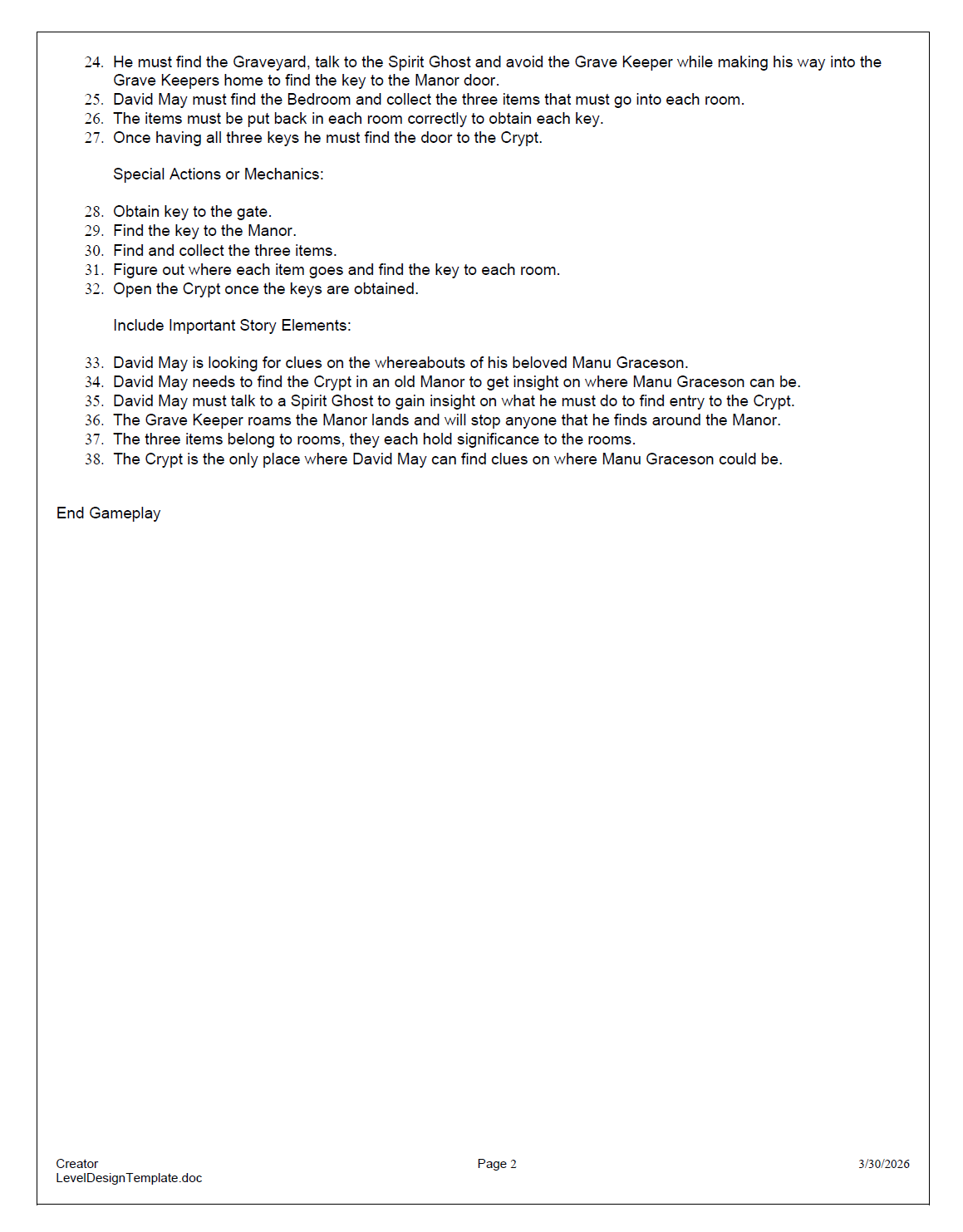 Gravesite that reveals a mysterious ghostly spirit that helps David May with clues on to how to get into the Manor, and any threats that could stop him from reaching the Crypt.